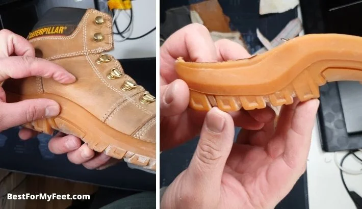 This is good because it makes the boot a tiny little bit lighter than using other types of footwear sole construction but on the other hand, you can’t resole easily and cost-effective work boots with this type of sole construction.