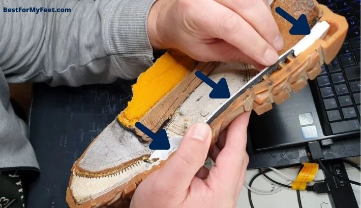 The toe cap itself is quite tough and it seems that I need to up my tools game here since I couldn’t cut through the steel with my Bosch jigsaw.