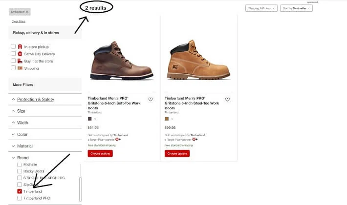 Let’s take the Timberland brand for example. If you select just Timberland, again, at the time I’m writing this page, they have only 2 models.