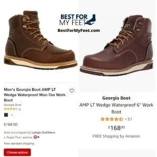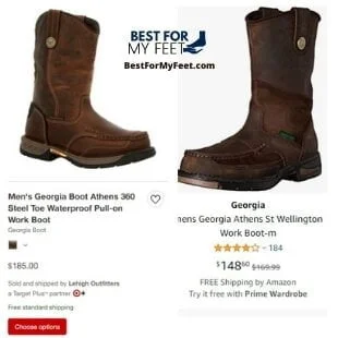 There are not too many products I can compare since the list is quite short. But when I looked at Georgia Athens steel toe work boots, at Target it was $186 and on Amazon, it was $148.60.